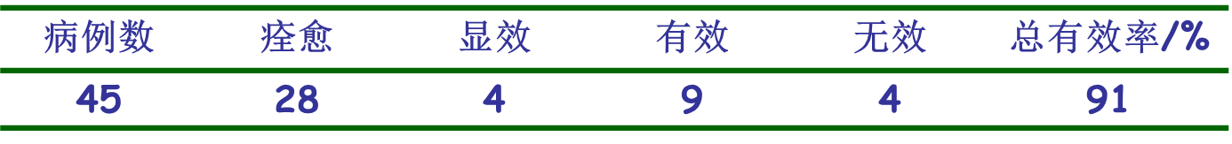 45名志愿者患有皮肤溃疡,涂抹含有2.5%积雪草提取物的膏霜,每天3-4次,定期观察,如连续应用1个月病情无进展则判为无效 ,停止治疗;有效病例连续用药 3个月,评定治疗结果。