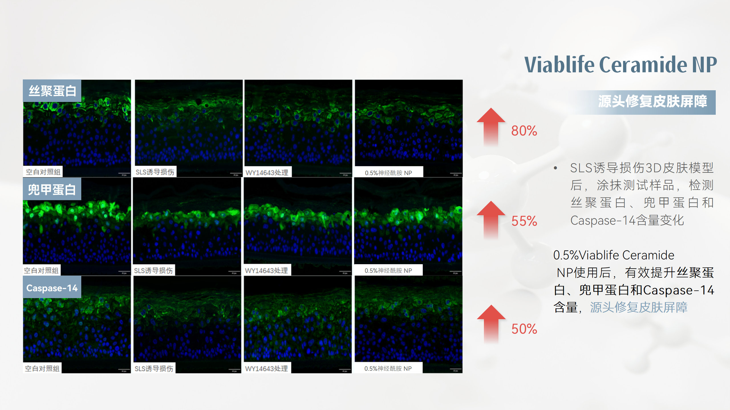 神经酰胺是一种存在于角质层细胞间隙的鞘脂类物质,因链长、羟基化的类型和程度、饱和度等差异而命名不同。神经酰胺NP是其中含量最多且功能较重要的一类。神经酰胺NP在构建和维持皮肤屏障功能中起着至关重要的作用。