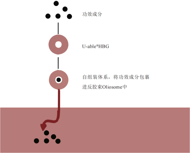 单一油脂的深度一步发酵,发酵过程中借助超级微型工厂,控制条件与工艺,富集Bio Lipids生物脂类,更具Bio Lipids特性。油&水桥梁特性突显,改善不溶成分的稳定性与功效性。产生的生物脂类可形成亲水基朝内,疏水基朝外的反胶束体系Oliosome,可将水溶性或亲水性物质封装于反胶束内,提高活性物的稳定性及皮肤渗透性。U-able® HBG是形成反胶束体系的封装油之一。
