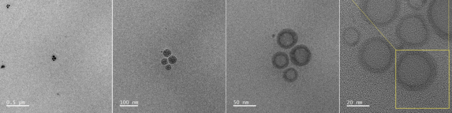 含有大分子HA(0.002%)呈现的SynBiOil EX的TEM分析证实,形成了50纳米或更小的反胶束。